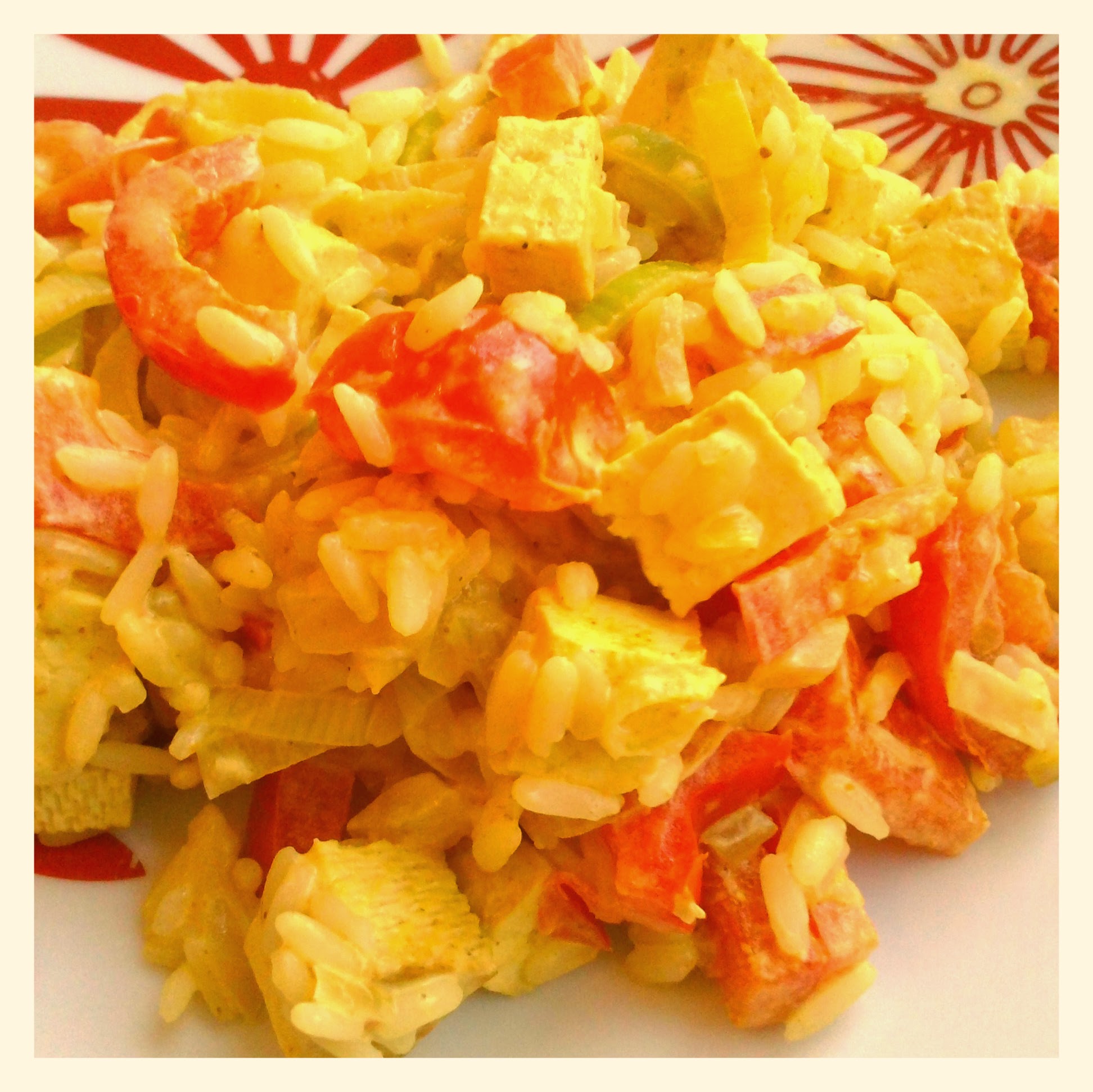 Miluji rychlá a jednoduchá jídla, která chutnají báječně a tohle je jedno z nich, když nemáte tolik času na přípravu. Dáme vařit jasmínovou rýži (do 10 min) mezi tím si orestujeme cibulku a na kostičky nakrájené přírodní tofu ( lze použít i s mořskou řasou, uzené, zeleninové ). Dále orestujeme zeleninu, já použila čerstvá rajčátka, papriku a pórek (lze použít i mraženou). Nakonec vše smícháme dohromady a dochutíme v mém případě solí a kari kořením. Možnost zalít smetanou, kdo má rád. Dobrou chuť :-)